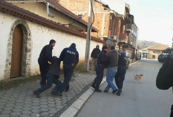 Ndaj protestuesve intervenoi policia e Kosovës, e cila arrestoi dy artistë të Lëvizjes Vetëvendosje dhe shtyu protestuesit 20 metra larg hyrjes në kishë për të liruar hyrjen e autobusit me serbë.