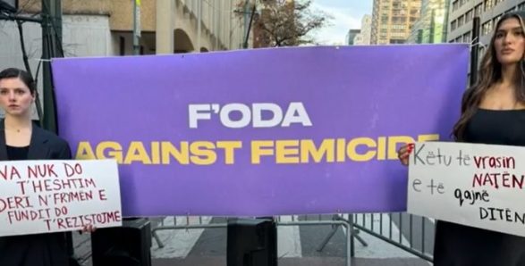 Disa vajza e gra me pankarta në duar, për më shumë se një orë me thirrjet e tyre, kërkuan drejtësi për Liridona Ademajn, dënimin e ndaljen për çdo rast të dhunës ndaj gruas, në Shqipëri, Kosovë dhe trevat shqiptare.