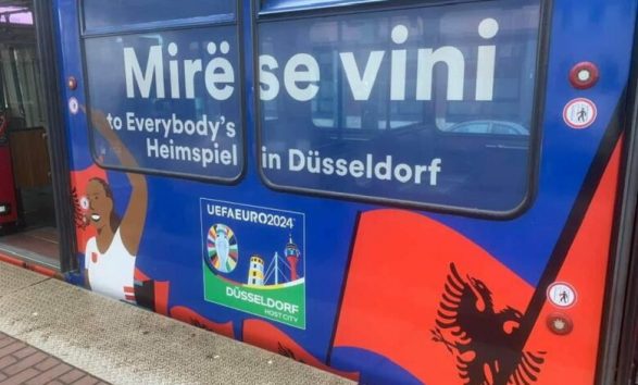 Në Düsseldorf të Gjermanis trenat janë mbuluar me flamuj kuq e zi dhe me mbishkrimin “Mirë se vini të gjithë në Düsseldorf UEFAEURO 2024”, shkruan albinfo.ch.