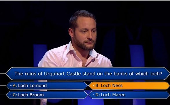 “Në bregun e cilit liqe gjenden rrënojat e kalasë Urquhart?”, ka qenë pyetja. Kendall ka spjeguar: “Këtë pyetje e di pasi atje e kam humbur këmbën”. Moderatori Jeremy Clarkson për disa sekonda heshti. Kendalli pohoi se kalaja në fjalë gjendet në Loch Ness, duke spjeguar më tej se në maj të vitit 2012, ai ka dashur të vizitojë këtë lokacion, kur papritmas involvohet në një aksident që për pak sa nuk i kushtoi me jetë.