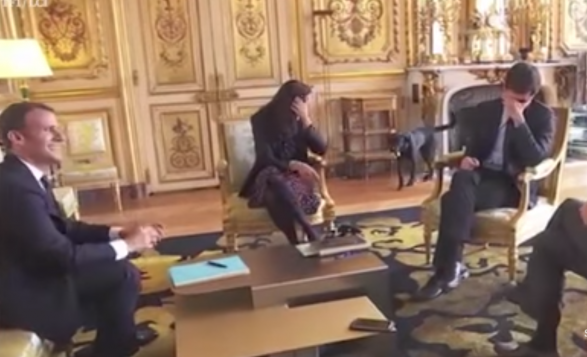 Qeni, me emrin Nemo, ishte incizuar teksa urinonte, gjatë një takimi të Macronit me tre anëtarë të rinj të qeverisë së tij.