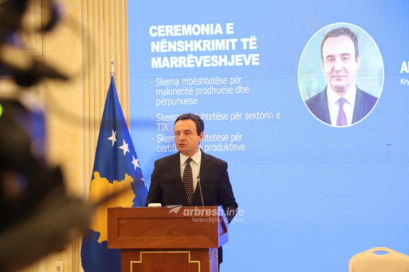 “Ne po bëjmë mbështetje direkte për bizneset për të kontribuar më shumë ne vendin tonë, 198 biznese kanë përfituar nga kjo marrëveshje, do të këtë ndikim në rritjen e punësimit dhe rritjen e të ardhurave kombëtare, kjo marrëveshje është shtyllë kryesore për zhvillimin kryesor te vendit tonë, kemi stabilitet ne rritje te vazhdueshme, me politikat e tona po mbështesim si asnjëherë më parë qytetarët, nënshkrimi i këtyre marrëveshje është shembull konkurrues ne Kosovë” , u shpreh Kurti.