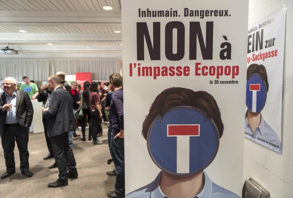 Iniciativa Ecopop kërkonte kufizimin ekstrem të numrit të të huajve në Zvicër me arsyetimin se mbipopullimi është i dëmshëm edhe për ambientin pasi që me të mbingarkohen rrugët, trafiku dhe në përgjithësi hapësira jetësore e banoreve të Zvicrës. Kjo iniciativë është hedhur poshtë me 74.1 për qind të votave dhe në asnjë kanton nuk ka pasur shumicë pro iniciativës. Më i bindshëm ka qenë refuzimi në kantonin Vaud, me 83% kundër ndërsa fitorja më pak bindëse është arritur në kantonin e Tesinës, me 63%.