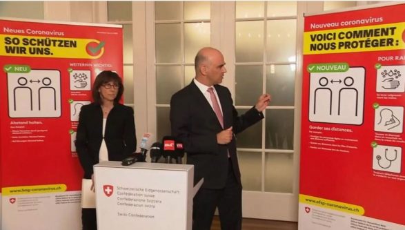 Ministri Federal që mbulon shëndetësinë Alain Berset dhe Heidi Hanselmann, Presidente e Konferencës së Drejtorëve Kantonalë të Shëndetësisë, kanë informuar në një konferencë për media të mbajtur mbrëmjen e të mërkurës në Bernë për përhapjen e virusit të koronës.