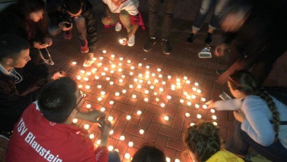 Në ambientet e Muzeut Kombëtar një grup personash, fëmijë e të rritur, kanë ndezur qirinj dhe janë mbledhur duke u lutur për personat që kërkohen nën rrënojat e banesave.