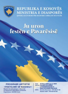 Qendra Kulturore e Kosovës me seli në Cyrih ka përgatitur një manifestim kulturor festiv për nder të Ditës së Pavarësisë së Kosovës. Në këtë program festiv, përveç shoqërive kulturore e artistike të komunitetit, merr pjesë edhe kengëtarja e njohur e xhazit, Elina Duni.
