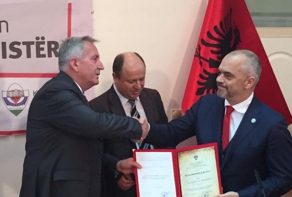 Kryeministrit Edi Rama i është dorëzuar titulli “Qytetar Nderi” nga Këshilli Komunal i Preshevës. Deri sa ai ka qëndruar në Komunën e Preshevës ku zhvilloi një takim me liderët rajonalë shqiptarë, mijëra qytetarë e kanë pritur atë me këngë e vallë në sheshin “Liria”.