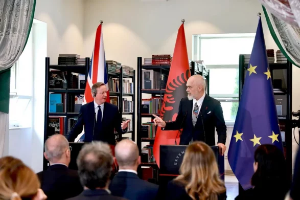 “Kemi diskutuar edhe për ecurinë e proceseve të paqtimit dhe të bashkëpunimit në rajon. Lordi Cameron është një mbështetës i vendosur i këtyre proceseve dhe dihet botërisht që Mbretëria e Bashkuar ka shprehur vazhdimisht një interes të veçantë për të parë normalizimin e plotë të marrëdhënieve rajonale dhe për të parë përfundimin me sukses edhe të procesit të dialogut mes Kosovës dhe Serbisë, ku ka pasur hapa pozitivë, por ku në vijimësi ka edhe ngecje në vend apo në vijimësi dihet edhe rreziku i kthimit mbrapa”, tha Rama.
