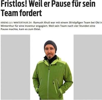 Ramush Xhuli është një shef zemërmirë i ekipit të tij prej 30 punëtorësh që bëjnë inventarin e artikujve në kompani të ndryshme. Ai punon për kompaninë Ivalis me seli në Francë, gjegjësisht për përfaqësinë e saj në Kriens të Lucernit. Është një punë që nuk paguhet mirë. Ndërmarrja nuk paguan pagën e 13-të dhe madje shefat synojnë që punëtorëve t`ua heqin edhe pauzën, shkruan blick.ch