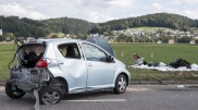 Gjatë rrëzimit avioni u përplas me një veturë, duke e rrokullisur atë.