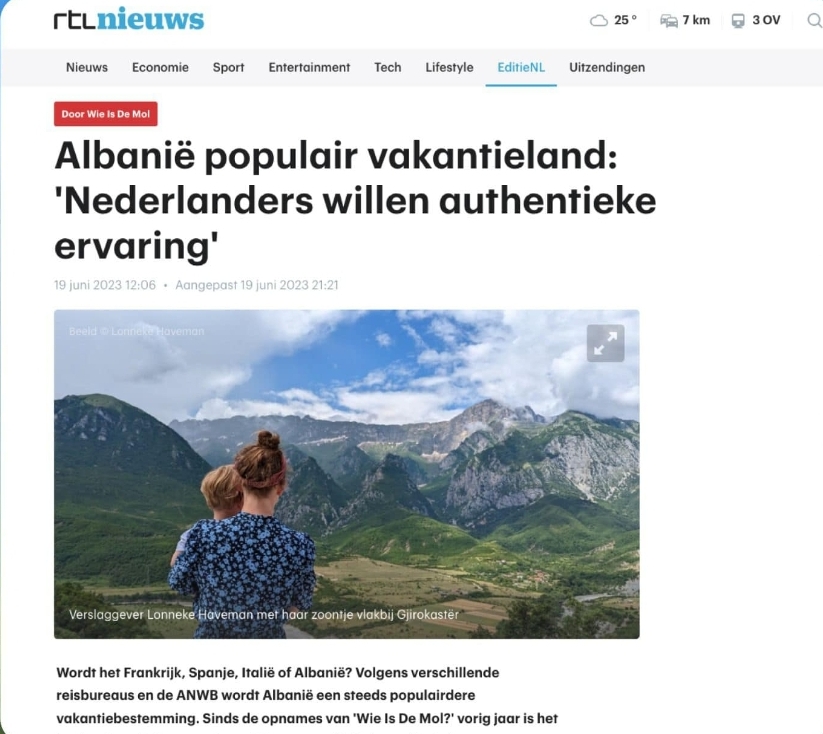 “Është media prestigjioze holandeze “RTL News” që konfirmon se këtë vit kërkesat për të vizituar Shqipërinë janë rritur me 50 %, ku “gjithmonë e më shumë turistët po kërkojnë diçka ndryshe nga destinacionet e zakonshme dhe duan një përvojë autentike”, që e gjejnë pa dyshim te ne. Vitin e kaluar, turistët nga Holanda ishin ndër grupet me rritjen më të shpejtë, +204 %, dhe e njëjta tendencë po vazhdon edhe gjysmën e parë të vitit 2023″, shkruan Rama.