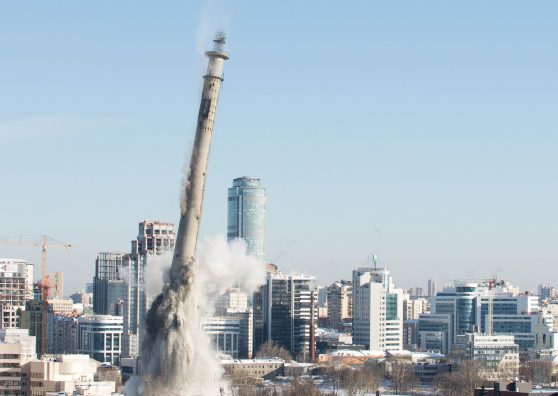 Derisa Rusia po ngutet që të përfundojë të gjitha lokacionet për kampionatin botëror në Futboll këtë vit, në qytetin siberian Yekaterinburg të shtunën është shkatërruar peizazhi më i njohur në qytet, një kullë televizive nga epoka sovjetike.