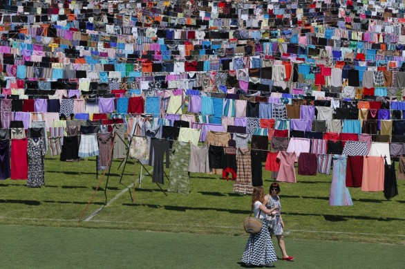 “Çdo ditë u rritëm në numër. U bashkuam për t’i përkujtuar dhimbjet e tyre. Për t’ua njohur sakrificën. Dhe për t’u thënë se nuk janë vetëm. Në këtë vepër të artit publik, që vjen para nesh në formën e mbi 5,000 fustaneve të varura në këtë stadium futbolli, ne komunikuam me njëri-tjetrin me gjuhën universale të artit. Pa ndërmjetësim, drejtpërdrejt”, tha Jahajga.