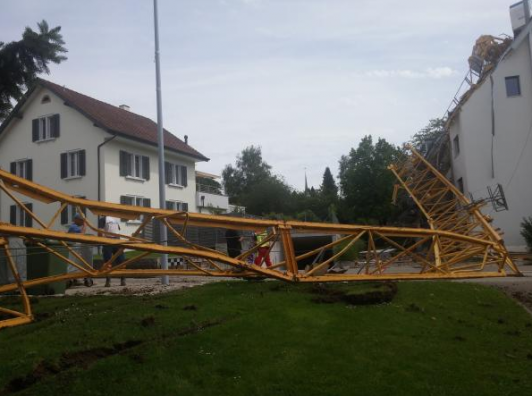 Në Uhrdorf (ZH), pasditen e së enjtes ishin tmerruar banorët e një ndërtese, ngase mbi çatinë e tyre ishte rrëzuar një kran ndërtimi. Për fat të mirë, përveç dëmeve të mëdha nga rrëzimi i kranit është lënduar lehtë vetëm një person.
