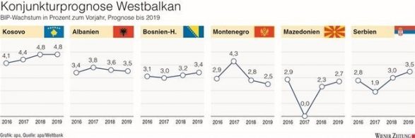 Në rrugën e zhvillimit ekonomik, duhet të tejkalohet një hendek. Shpesh rajoni shquhet për mungesë të lidhjeve me rrugë, tren ose aeroplanë. Përmirësimi i infrastrukturës është pjesë esenciale e strategjisë së Brukselit, përcjell albinfo.ch. Instituti i Bankës Botërore së fundi ka ulur prognozat për rritjen ekonomike të Ballkanit Perëndimor në 3.2 nga 3.3 për qind dhe për vitin e ardhshëm 3.5 nga 3.6 për qind (shih foton).