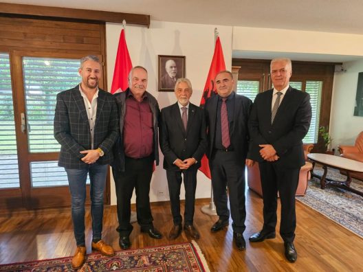 Të ejten në Ambasadën e Shqiperisë në Bernë një delegacion i Rrjeti i Bizneseve të Diasporës Shqiptare në Zvicër, i kryesuar nga kryetari i Rrjetit, Qamil Isufi, nënkryetari i Rrjetit të Bizneseve të Diasporës Shqiptare në Zvicër, Rexhep Berisha, si dhe këshilltari juridik, Nazmi Jakurti, kanë takuar diplomatin shqiptar për të nderuar me një mirënjohje për kontributin e çmuar në përkrahjen e vazhdueshme të Rrjetit të Bizneseve të Diasporës Shqiptare (RRBDSHZ), ngritjen në një nivel më të lartë të shoqërisë shqiptare dhe bizneseve shqiptare në Zvicër.