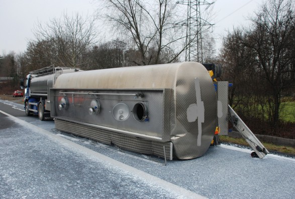Nga një rimorkio e kamionit janë derdhur disa mijëra litra qumësht si pasojë e një aksidenti. Në të vërtetë rimorkioja ishte shkëputur nga kamioni pasi që ky i fundit ishte luhatur duke kaluar në autostradë nga hyrja Baar ZG.