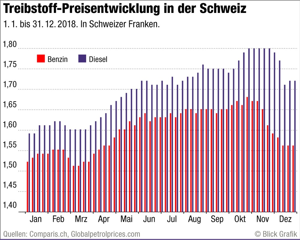 Në Zvicër duhet të paguajnë 1.63 franga për një litër benzinë, që është më i shtrenjti që nga viti 2014, megjithatë, çmimet luhaten ndjeshëm gjatë vitit.