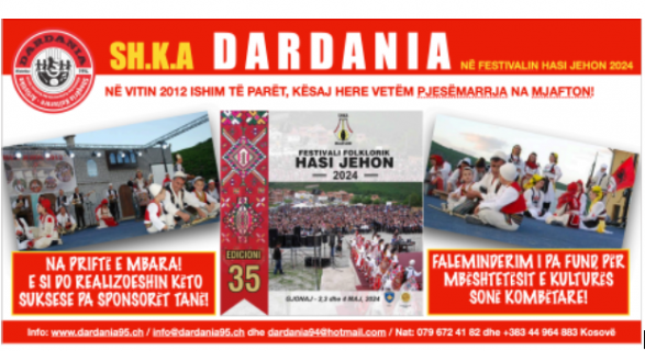 SHKA “Dardania” nga Winterthuri do të marrë pjesë në festivalin folklorik “Hasi Jehon”