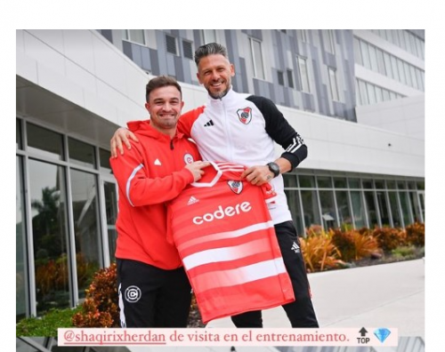 Një ndër klubet me famë të madhe botërore, River Plejt, po zhvillon fazën përgatitore në Shtetet e Bashkuara të Amerikës. Për këtë arsye, Shaqiri shfrytëzoi rastin që të vizitojë nga afër ekipin argjentinas dhe trajneri i River Plejtit, Martin Demikelis, dikur lojtar i ekipeve të njohura si Man. Siti dhe Bajern Munih, në shenjë respekti i dhuroi një fanellë të klubit.