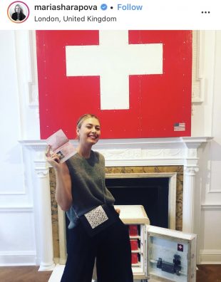 Tashmë Zvicra ka edhe një tenisiste profesionale dhe ajo është Maria Sharapova (31), e cila në rrjetin e saj në Instagram ka nxjerë një fotografi ku tregon pasaportën e re zvicerane. Me prapaskenë një flamur gjigant zviceran, rusja shkruan: «ëhat is the purpose of your visit?» – Cila është arsyeja e vizitës suaj? Si vend ajo jep Londrën. Por një shikim i qartë mbi dokumentin tregon se nuk bëhet fjalë për një pasaportë origjinale zvicerane.