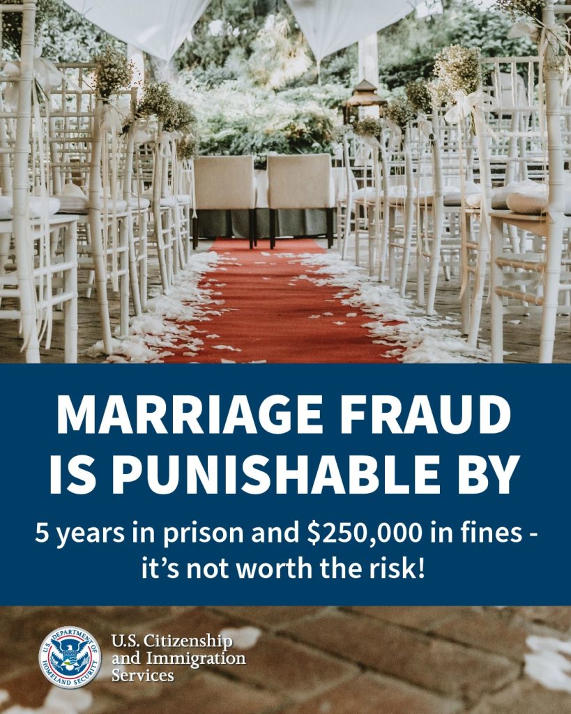 “Mashtrimi për martesë është një krim federal në Shtetet e Bashkuara dhe mund të çojë në dënime serioze. Gjithmonë zgjidhni një proces të ligjshëm emigracioni për të hyrë në vend dhe për të siguruar dokumentacionin e duhur”, thuhet në njoftim, transmeton albinfo.ch.