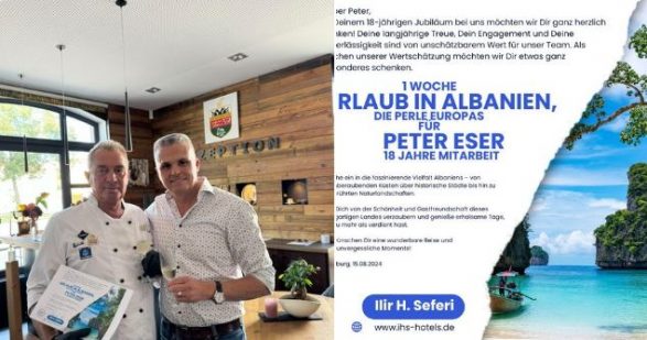 Bashkatdhetari ynë, Ilir Hajzer Seferi, afarist e veprimtar i mirënjohur në Gjermani, vlerëson punëtorin e tij shumëvjeçar gjerman, duke e shpërblyer atë me një javë pushim në bregdetin shqiptar, ose në “perlën e Evropës”, siç e ka prezantuar ai.