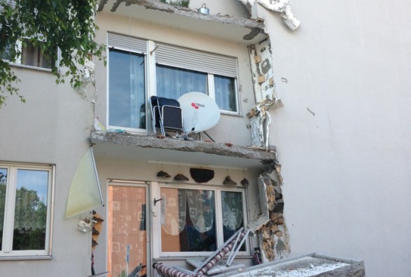 Ballkonet janë të bllokuara për shkaqe sigurie edhe në anën tjetër ndërsa banorët jetojnë ende aty.