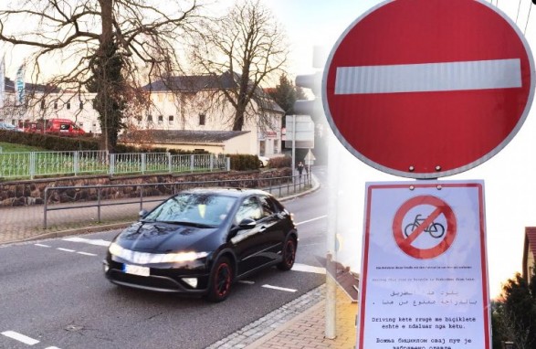 Për të evituar aksidentet e shpeshta që ndodhnin në një rrugicë që çon përmes një lagjeje në një kamp azili, kryetari Greysiger i asamblesë së qytetit Haynichen i përvoli vetë mëngët dhe bashkë me azilkërkuesit bënë një shenjë të re komunikacioni, shkruan mopo24. Përveç në gjermanishte, aty shkruan edhe në gjuhën shqipe, arabe, angleze dhe ruse se biçiklistët duhet të kenë kujdes pasi që është rrugë njëkahëshe dhe nuk bën të kalohet nga ana e kundërt.