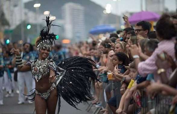 Muzikantët nga 13 shkollat më të mira të sambas në Rio de Janeiro vallëzuan pranë plazhit Copacabana, ndërsa u nisën për karnavalin e famshëm të qytetit.