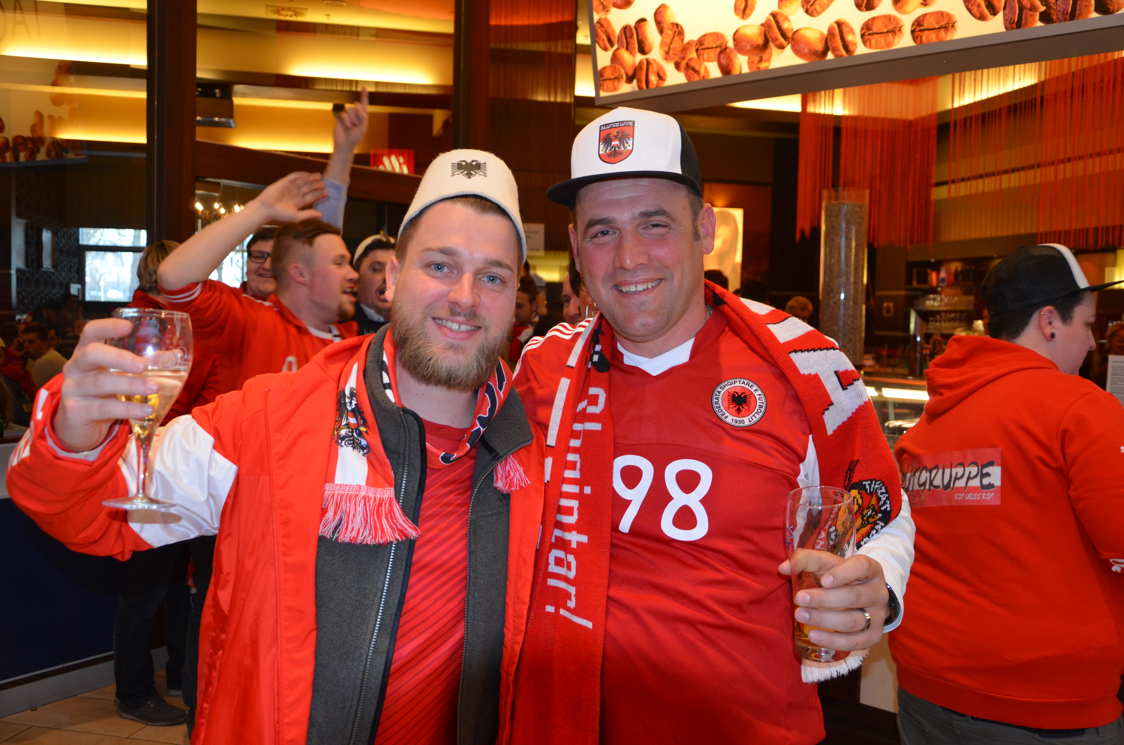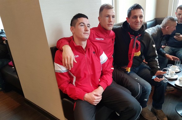 „Kemi ardhur dje nga Amerika në Vjenë, vetëm për të përcjellë, me një fjalë, ekipin tonë kombëtar”, u shpreh gjatë pauzës së pjesës së parë, tiranasi Kujtim Kaziu. “Ne ishim të lumtur që u njohëm me të gjithë futbollistët, bëmë fotografi më ta dhe u thamë fjalët tona për t’i motivuar për një lojë të bukur, tha Kaziu me banim në Nju Jork.