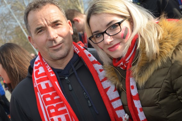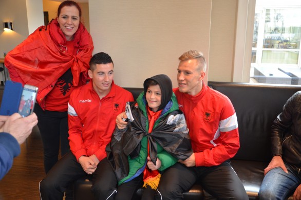Në mesin e qindra tifozë shqiptarë nga Zvicra, të barrikaduar para stadiumit ku luhej ndeshja, takojmë edhe një tifoze zvicerane që thuajse nuk lë ndeshje të kombëtares pa e parë. Para se te zhvillohej ndeshja ajo kishte vajtur bashkë më të shoqin shqiptar Ardit Sadikaj në hotel Hilton për të takuar idhullin e saj Taulant Xhakën, me të cilin kishte arritur të bëntë një fotografi.