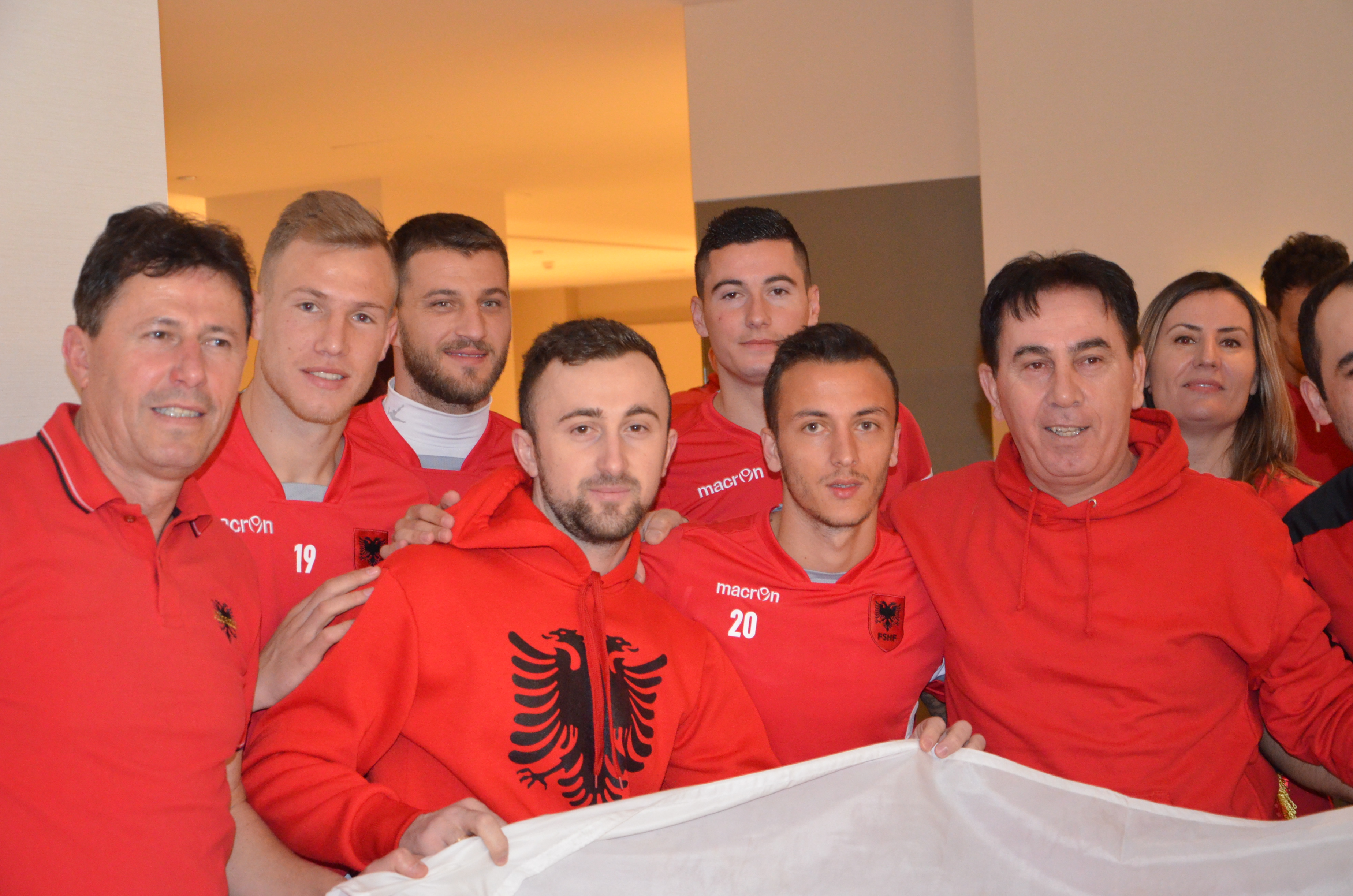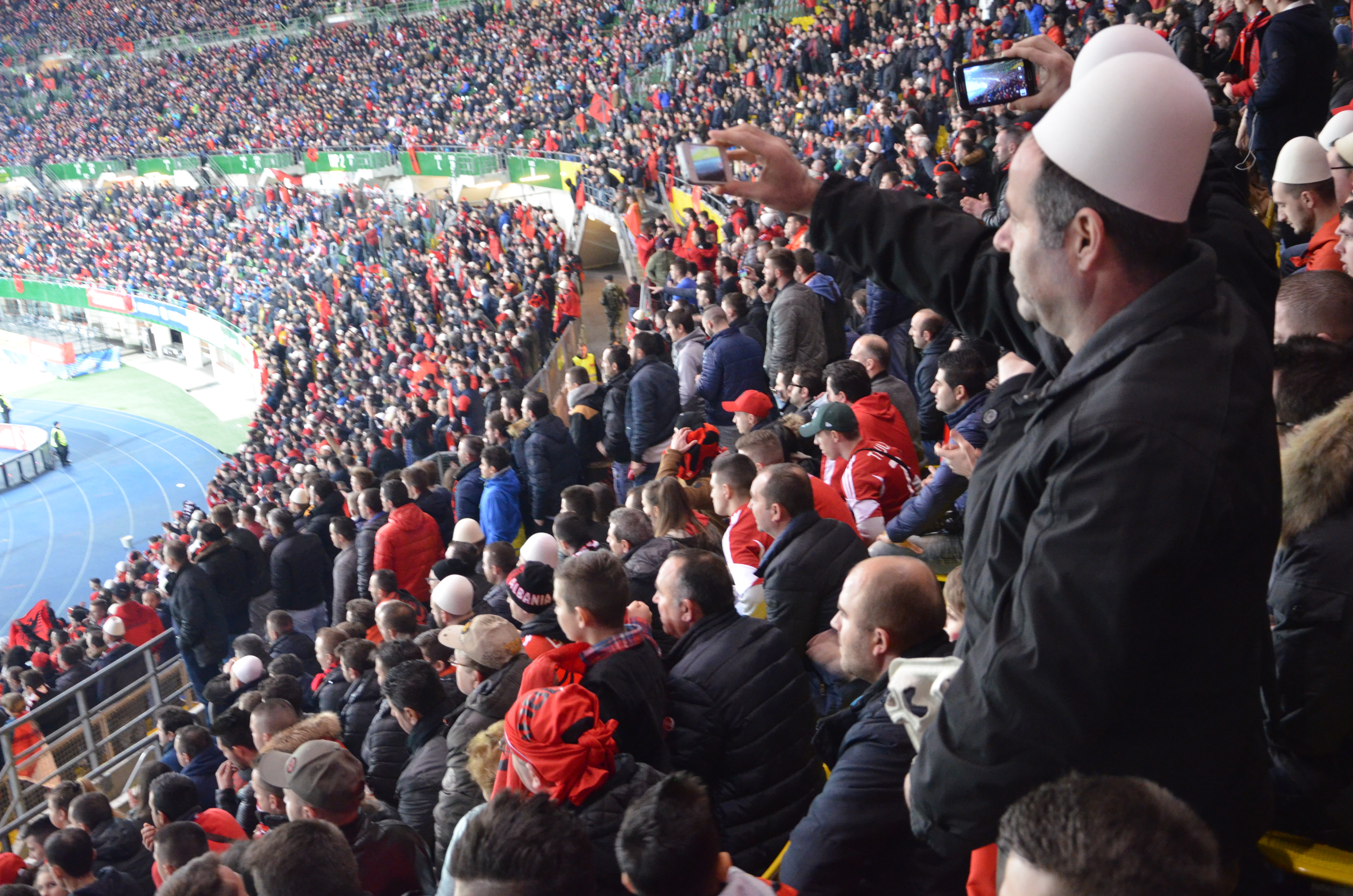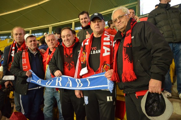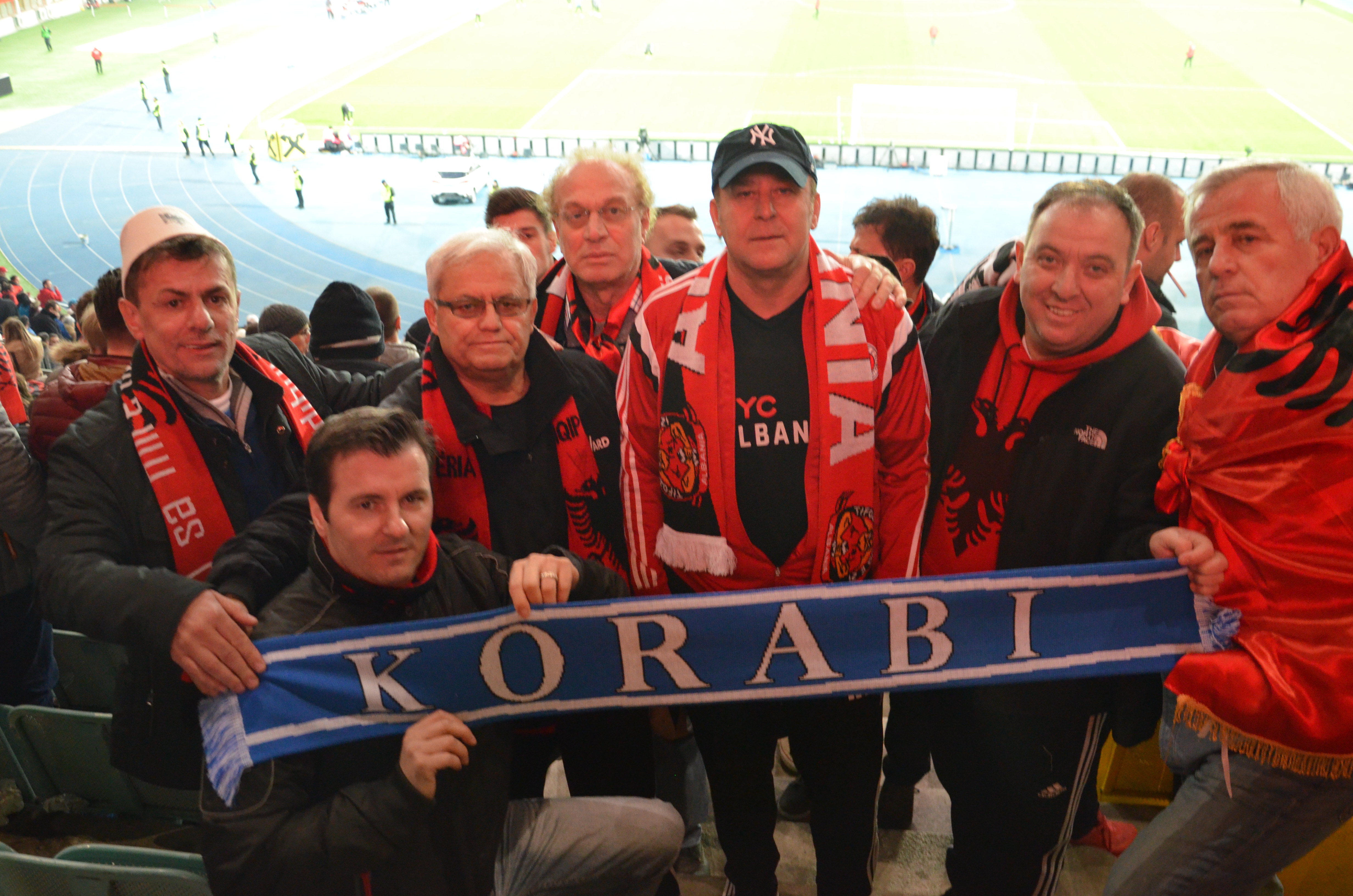 Në mesin e tifozëve kuq e zi, në sektorin për të cilin ishin ndarë biletat për ta, takojmë seniorët e klubit “Korabi” të ardhur enkas nga Nju Jorku për ta parë kombëtaren. Ata thanë se kanë bërë mbi 7 mijë kilometra rrugë për t’i ndjerë nga afër djemtë e shqiponjave e për ta shijuar spektaklin e tifozëve kuq e zi. Madje kishin prenotuar në të njëjtin hotel ku ishte e vendosur kombëtarja.