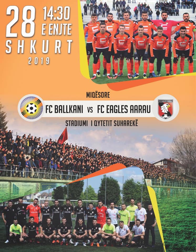 Sot nga ora 14:30, zhvillohet lojë miqësore në mes të KF “Ballkani” Suharekë dhe FC “Eagles” Aarau, ndeshja zhvillohet në Stadiumin e Qytetit të Suharekës.