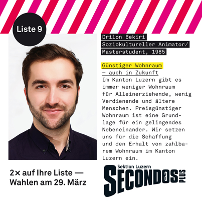 Në legjislaturën e kaluar Ss Plus”econdos kanë pasur një përfaqësim të mirë në parlamentin kantonal të Lucernit. Pretendimi ynë është që të kemi përfaqësim edhe në legjislaturën tjetër katërvjeçare. Organizata politike Second@s Plus ka kontribuar qe 10 vjet me sukses kundër politikave diskriminuese në Zvicër. Pjesëmarrja jonë aktive në iniciativat e ndryshme në nivelin komunal, kantonal dhe nacional ka treguar një sinjal të fuqishëm për mundësinë e ndryshimeve pozitive në jetën e të gjithë qytetarëve pa dallim race, etnie apo fetare.