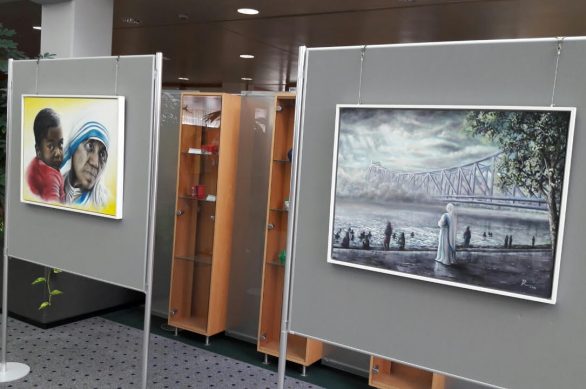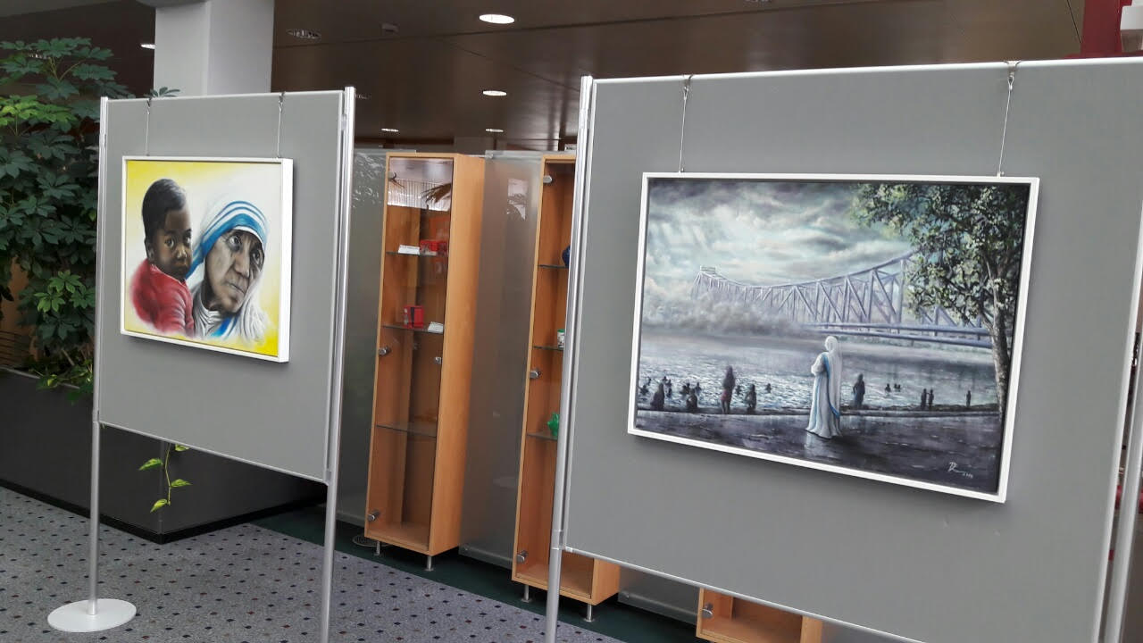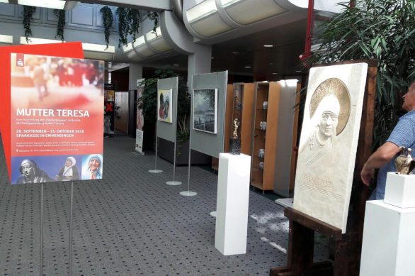 Në ekspozitë janë vendosur piktura dhe skulptura të cilat ose kanë lidhje të drejtpërdrejtë me motrën e nderit ose janë të frymëzuara nga vepra e Nënë Terezës. Artistët shqiptarë dhe gjermanë nga regjioni janë: Mal Myrtaj, Bukurije Dalladaku, Habib Shashivari, Augustin Pergega, Hannes Lockenvitz dhe Daniel Forster, transmeton albinfo.ch. Ishte planifikuar të vinte edhe Gjelosh Gjokaj, por piktori i njohur shqiptar vdiq të dielën që shkoi.