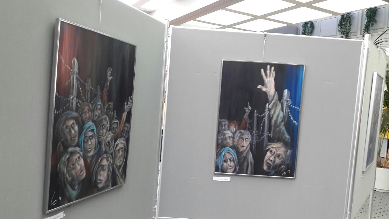 Krejtësisht ndryshe duken punimet e Hannes Lockenvitz. Ato tregojnë njerëzit në situata të pashpresa ose njerëz në arrati, të ngujuar nga tela me gjemba dhe të përcjellë nga korbat si paralajmërues të vdekjes. Në një punim tjetër piktori provon të paraqesë ndërgjegjen e vrarë të njerëzve. Prandaj nevojitet edhe drita. Dhe “Nënë Tereza” transmeton dritën për të cilën ne kemi nevojë”, thotë Lockenvitz.