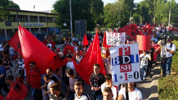 Shqiptarët “kuq e zi” protestuan në Shkup