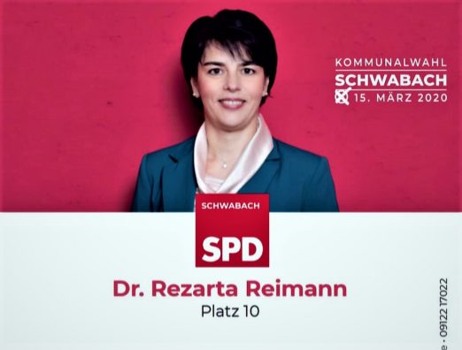 Shqiptarja Rezarta Reimann, kandidate për këshillin bashkiak në Schwabach, qytet në afërsi të Nurnbergut, Gjermani. E specializuar për biologji, ajo është angazhuar në veprimtari komunitare dhe ka realizuar disa projekte në fushën e komunikimit e bashkëpunimit ndërkulturor dhe ndërfetar, transmeton albinfo.ch.