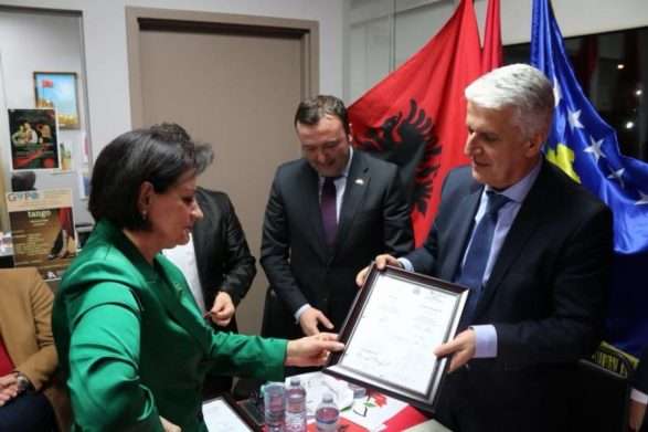 Në takim, ku ministri Majko shoqërohej nga homologu i tij nga Kosova Dardan Gashi dhe ambasadorët e të dyja vendeve, u njoh me punën dhe potencialin e shoqatës.