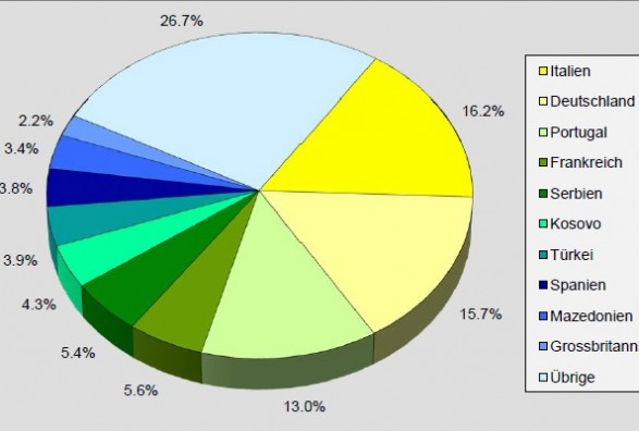 Megjithatë, shtetasit e Serbisë (në mesin e të cilëve ka ende shqiptarë të Kosovës me pasaporta serbe) me 97198 veta, janë në vendin e pestë, pas atyre të Italisë, Gjermanisë, Portugalisë dhe Francës. Në vendin e gjashtë, me 77’313 veta janë shtetasit e Kosovës.
