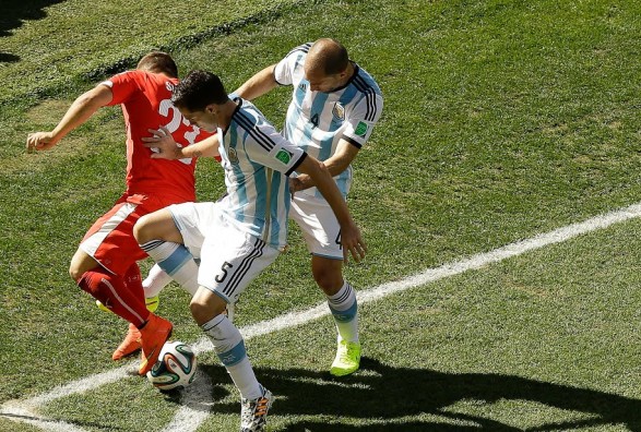 Ndeshja e shumëpritur Zvicër-Argjentinë e të tetës së finales të Botërorit 2014 ka filluar në stadiumin e mbushur përplot të Sao Paolos. Ndeshja ka filluar e balancuar. Që në minutat e parë vihet re një presion i lojtarëve argjentinas ndaj Shaqirit, i cili përjeton disa shtyrje nga ata. Edhe Mehmedi është shpeshherë cak i tyre, ndërsa në minutën e 24 Mehmedi shkakton një faul dhe me këtë Argjentinës i mundësohet një gjuajtje e lirë. Por pa rrezik për portën zvicerane.