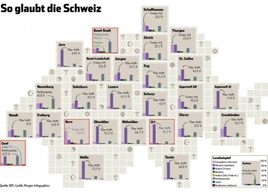 Pothuajse një në katër banorë në Zvicër nuk i takojnë ndonjë besimi fetar. 1.57 milionë nuk kanë asnjë religjion, sipas Zyrës Federale të Statistikave, shkruan Blick, përcjell albinfo.ch. Në vitin 2000 ishin vetëm 670 mijë jobesimtarë. Shumica e tyre jetojnë në kantonin Basel-Stadt, ku ata përbëjnë pothuajse gjysmën e popullsisë, me 45 për qind. Pastaj vjen Neuchâtel (42%) dhe Gjeneva (37%).