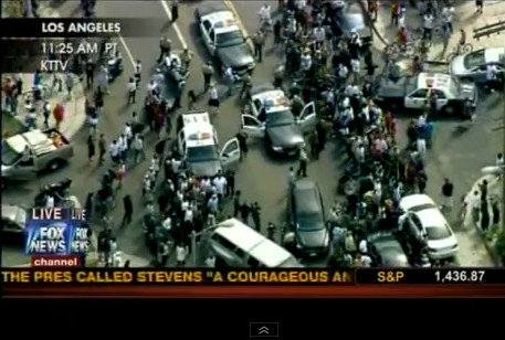 Në mëngjesin e të mërkurës, një Volvo e zezë po ikte me shpejtësi nëpër rrugët e Los Angjelosit, e ndjekur nga disa makina të policisë. Pak më parë në Santa Clarita ishte plaçkitur një filialë e Bank of America. Por, kjo ndjekje bëhet më interesante në momentin kur personat që ndodheshin në makinën e zezë fillojnë të hedhin kartmonedha dollarësh për dritare!