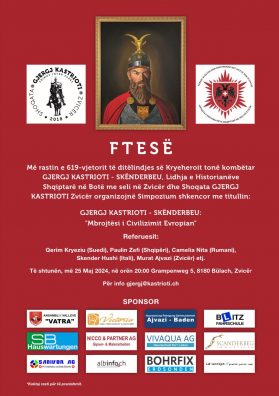 Me rastin e 619-vjetorit të ditëlindjes së Kryeheroit tonë kombëtar, GJERGJ KASTRIOTI – SKËNDERBEU, Lidhja e Historianëve Shqiptarë në Botë me seli në Zvicër dhe Shoqata GJERGJ KASTRIOTI Zvicër organizojnë Simpozium shkencor me titull: