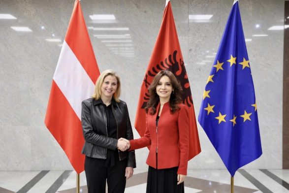 Ministrja për Evropën dhe Punët e Jashtme e Shqipërisë, Elisa Spiropali, priti sot në Tiranë, Ministren Federale për Evropën dhe Punët e Jashtme të Austrisë, Beate Meinl-Reisinger, në vizitën e saj të parë zyrtare në Shqipëri.