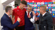 Pas përfundimit të pjesës së parë në ndeshjen Zvicër–Kosovë, një gazetar...