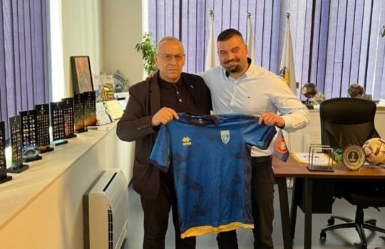 Ragip Xhaka, në selinë e FFK-së, pritet nga kreu i Federatës, Agim Ademi