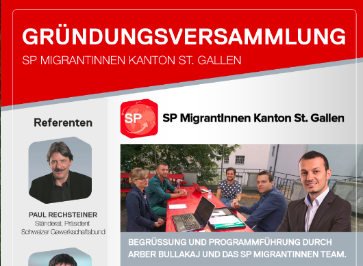 Partia Socialdemokrate e Zvicrës, dega e Kantonit St. Gallen, mban më 22 gusht mbledhjen themeluese të grupit të migrantëve në kuadër të saj