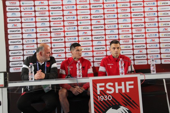 Kombëtarja shqiptare ka mbajtur pasditen e sotme konferencën e parë për media që prej ardhjes, dy ditë më parë në vendgrumbullimin e saj në Perros Guirec.